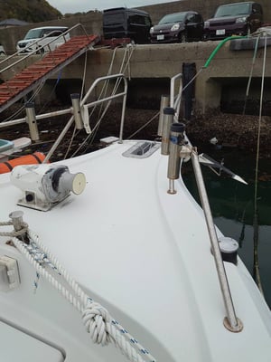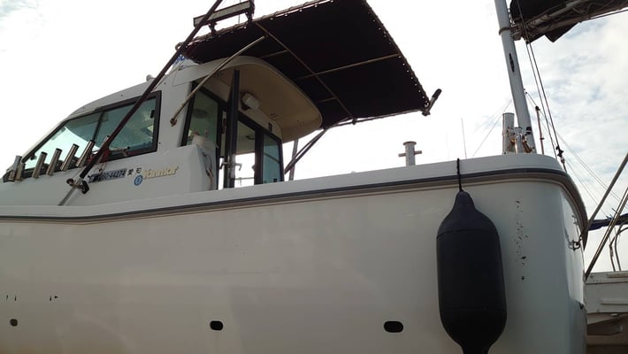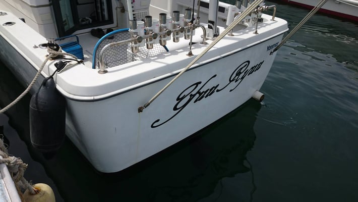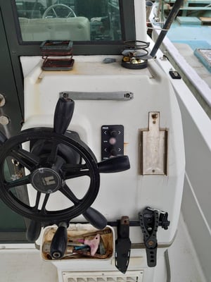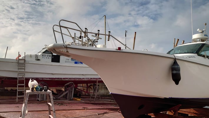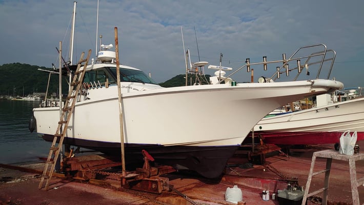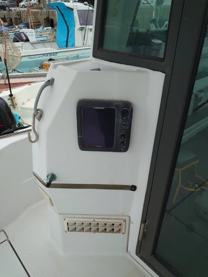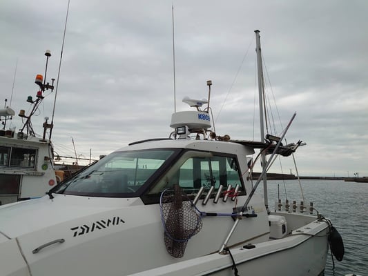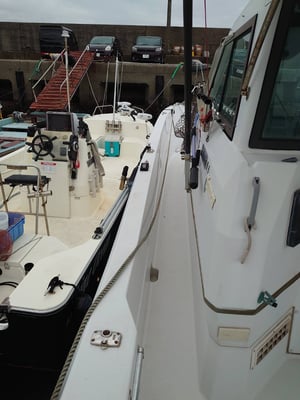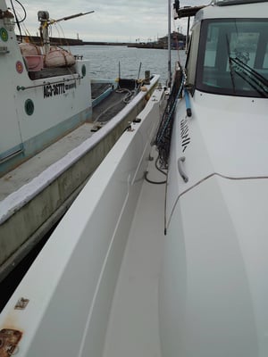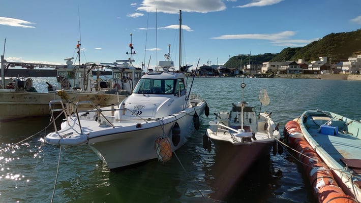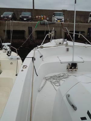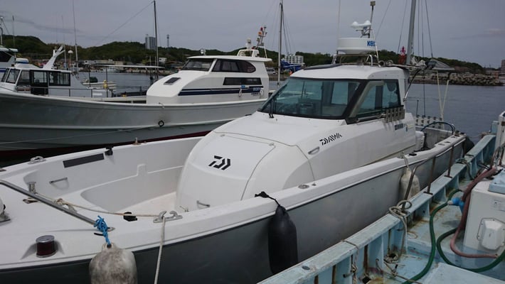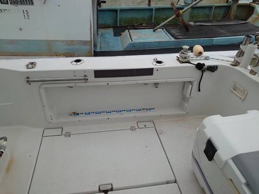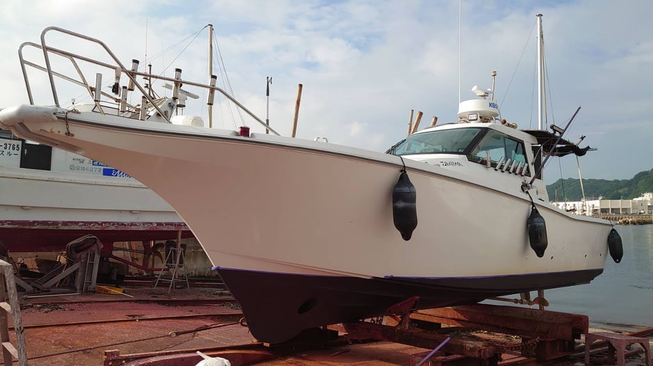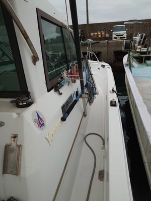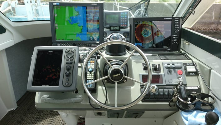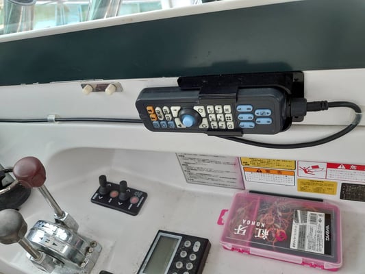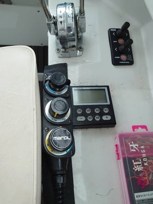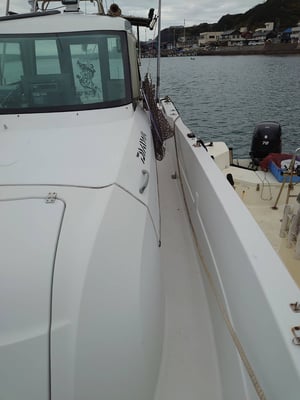 装備:GPS漁探、漁探、ソナー、サテライトコンパス、カラー液晶レーダー、オートパイロット、3連リモコン、バウスラスター、スターンスラスター、トリムタブ、電動リール電源 6ヶ所、マリンクーラー、電動マリントイレ、電動式アンカーウインチ、集魚灯 2か所、サーチライト、デッキライト、デフロスター、2000Wインバーター、スパンカー、オーニング、無線機、アウトリガー